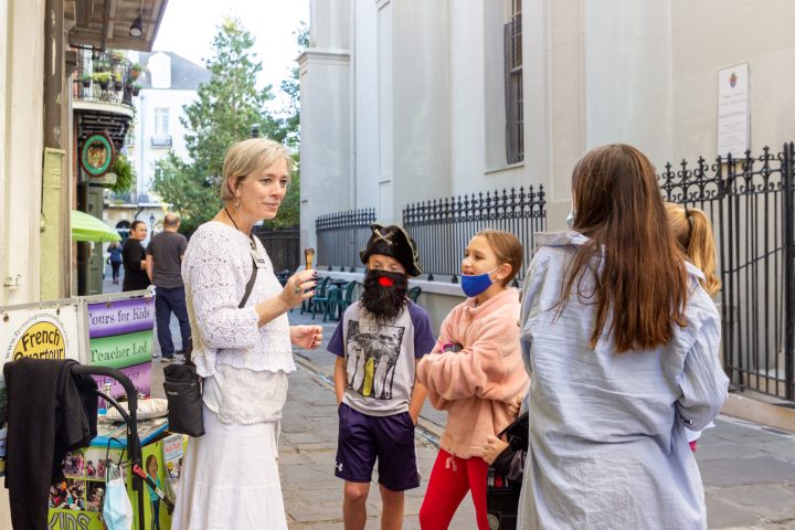 The teacher led Creole Kids Tour takes kids back to the “Golden Era” of New Orleans, the 1830s. We find out what life was like for kids back then: Free vs. enslaved, American vs. Creole, and boys vs. girls. The good, the bad, the weird, and the gross. We’ve got it all! (And, of course, maps, primary sources, and props.) Discover New Orleans on this family-friendly tour, designed to keep your kids entertained and engaged the entire time. Moms and Dads learn a thing or two along the way as well on this walking New Orleans tour!